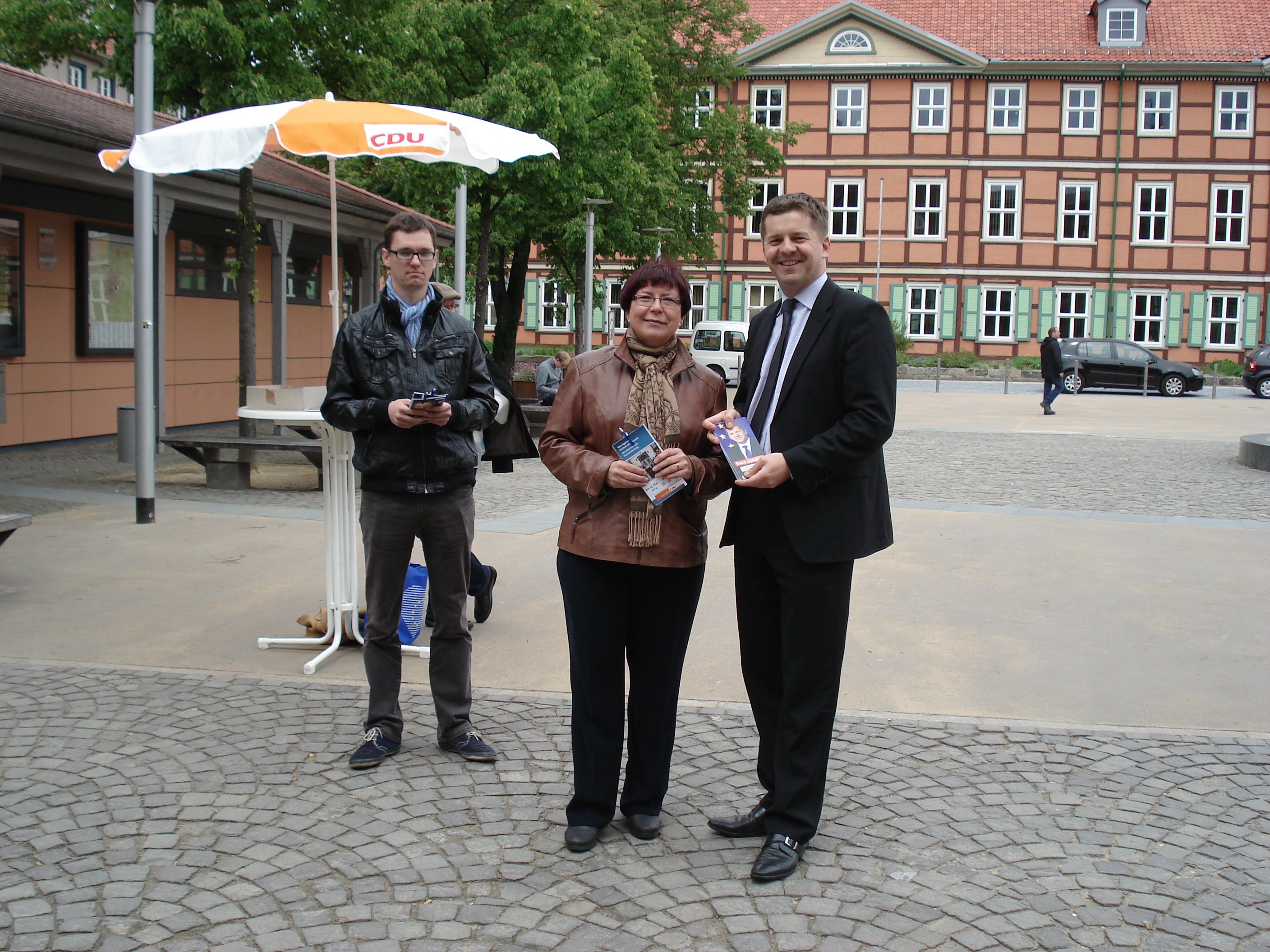 Diejenigen Passantinnen und Passanten, die am Infostand ganz offen angeben, sich weder an der Europa- noch an der Kommunalwahl beteiligen zu wollen, versuchen wir natürlich davon zu überzeugen, dass die Beteiligung an beiden Wahlen gerade in diesem Jahr für Wernigerode und Sachsen-Anhalt von besonderer Bedeutung sind. Warum? Weil die Wahlbeteiligung sowie das CDU-Ergebnis zur Europawahl in diesem Jahr darüber entscheiden werden, ob Sachsen-Anhalt zukünftig überhaupt noch mit wenigstens einem Abgeordneten im Europaparlament vertreten sein wird. Bis zur letzten Europawahl im Jahr 2009 wurde unser Bundesland in Straßburg bekanntlich noch von zwei Abgeordneten aus CDU und SPD vertreten, seit 2009 lediglich noch durch Dr. Horst Schnellhardt, der in diesem Jahr durch Sven Schulze als neuem CDU-Spitzenkandidaten für Europa abgelöst wird. Sollte Sven der Einzug ins Europaparlament doch nicht gelingen, steht Sachsen-Anhalt zukünftig ohne einen eigenen Interessenvertreter in Straßburg dar – ein Ergebnis, über das man sich ganz unabhängig von der eigenen politischen Affinität als Sachsen-Anhalter kaum freuen könnte.