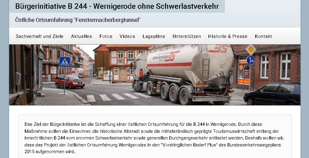 Seit etlichen Jahren engagiert sich eine Bürgerinitiative „B244 – Wernigerode ohne Schwerlastverkehr“ für die verkehrliche Beruhigung der B244, insbesondere um die Wohn- und Lebensqualität in Nöschenrode nachhaltig zu verbessern. Die CDU / Haus & Grund–Fraktion unterstützt diese Intention ausdrücklich.