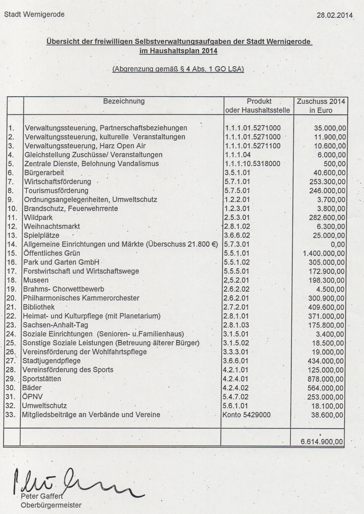 Gerade diese Situation stellt die Stadträte vor eine größer werdende Verantwortung. Es bedarf klarer politischer (!) Prioritätensetzungen. In den letzten Jahren hat sich eine Unart bei den Haushaltsberatungen eingeschlichen, dass das Zahlenwerk nur noch vorgestellt wird und alle Änderungen aus den Reihen der Stadträte von vornherein abgelehnt werden. Eigentlich dachte ich ja immer, dass die Bürgerschaft, vertreten durch den Stadtrat, einen Haushalt aufstellt, aber anscheinend wedelt in Wernigerode zunehmend der Schwanz mit dem Hund.